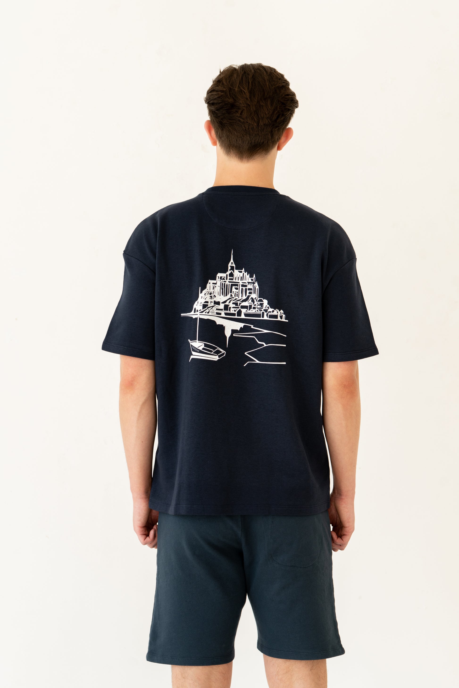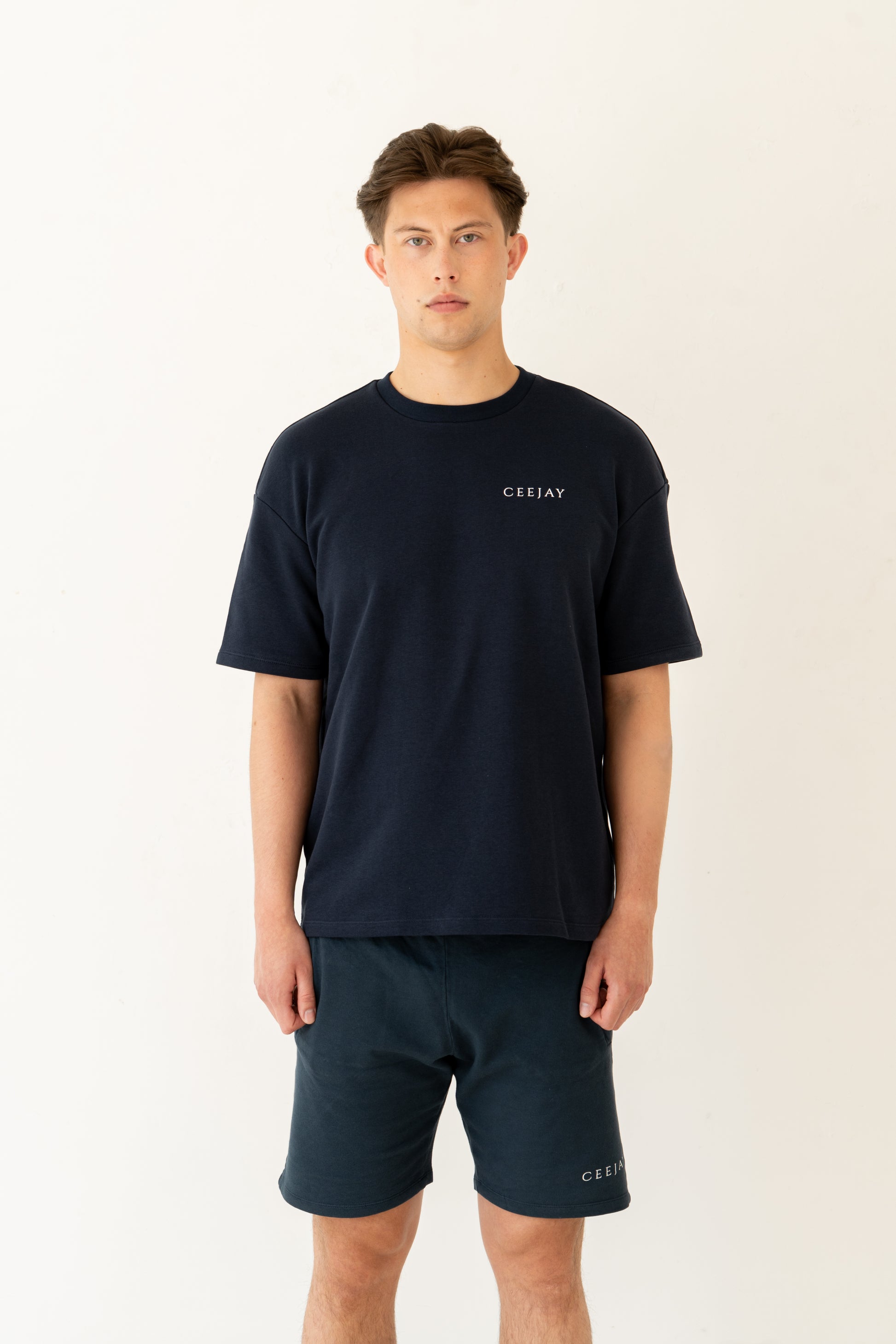 Relaxed French Terry shorts in Navy Blue with the signature Ceejay logo at the hem. Designed for comfort with structure, this piece pairs perfectly with items from our Le Mont Saint Michel line.